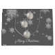 Gift your Christmas presents this holiday season with a Silver Christmas Ornaments Gift Bag. Gift bag design features a trio of hanging Christmas ornaments with falling snowflakes and a dark gray background. Additional gift and holiday items available with this design as well.