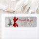 Adorable christmas silver tree and red bow on white background. An elegant and sophisticated designe.Costumize with your name and address details.