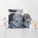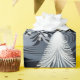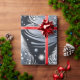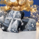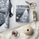 Silver Christmas trees on a blue/grey background for Christmas gift wrapping