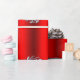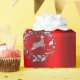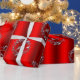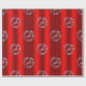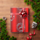 A very elegant red Christmas wrapping paper covered with a pattern of silver Christmas wreaths and silver reindeer to add a touch of sophisticated style to your gift wrapping these holidays.