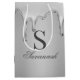 Chic Silver Liquid Chrome Drips Hot Metal Monogram Gift Bag with our trendy faux liquid chrome dripping on a silver metallic background with your custom monogram and name. Please contact us at cedarandstring@gmail.com if you need assistance with the design or matching products.