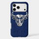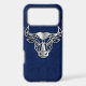 Protect your iPhone 17 Pro Max with this bold, luxury design featuring a powerful silver chrome geometric bull head. The 3D metallic mask aesthetic creates a unique, futuristic, and high-strength look, perfectly contrasted against a premium cobalt blue python snakeskin background. This unique fusion of wild energy and modern industrial art is designed for those who command respect and want a premium accessory. High-quality print with a sleek, metallic finish.