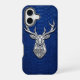 Experience the peak of wilderness luxury. This iPhone 16 case features a magnificent metallic silver geometric deer head with sharp, detailed antlers in a 3D chrome style. The modern industrial art is perfectly set against a premium cobalt blue python snakeskin texture. A sophisticated choice for those who value nature, leadership, and high-end minimalist design. Designed to turn your phone into a bold statement of elegant strength.