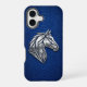 Gallop into luxury with this stunning iPhone 16 case. Featuring a sleek, metallic silver geometric horse head in a sharp 3D chrome style, symbolizing speed, freedom, and strength. The modern industrial art is set against a premium cobalt blue python snakeskin background for a sophisticated and high-end aesthetic. Perfect for equestrian lovers and those who appreciate futuristic minimalist wildlife art. A bold and elegant protective shield for your tech.