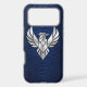 Rise above the ordinary with this luxury iPhone 17 Pro Max case. Featuring a sharp, metallic silver geometric phoenix (or soaring eagle) in a high-definition 3D chrome style. The modern industrial art is perfectly set against a premium cobalt blue python snakeskin texture. Designed for those who appreciate futuristic minimalist art and exotic textures. This case offers a bold, sophisticated aesthetic that turns your tech into a piece of wearable art.