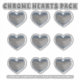 This cute sticker pack features (9) nine silver chrome hearts that you can put anywhere.