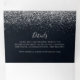 This silver confetti calligraphy trifold wedding invitation is perfect for a rustic wedding. The simple and elegant design features classic and fancy script typography in with a blue background and silver confetti.