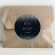 This silver confetti calligraphy wedding classic round sticker is perfect for a rustic wedding reception. The simple and elegant design features classic and fancy script typography in with a blue background and silver confetti.