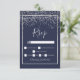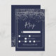 Silver confetti navy blue typography rsvp wedding party invitation .Perfect for a modern elegant wedding party.