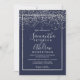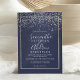 Silver confetti navy blue typography wedding invitation