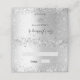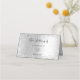 A modern and elegant. A silver looking background decorated with confetti. Personalize and add your guests names and their table number by hand.
