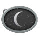Silver crescent moons - starry background oval belt buckle