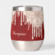 Silver Crimson Red Glitter Drips Monogram Thermal Wine Tumbler