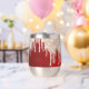 This unique wine glass tumbler has a red gradient background that almost glows. Around the top rim are sparkly silver and pink red tones of glitter drips. Your name is in silver script below. You may change the font, if you'd like, by customizing. Glamorous!