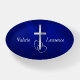 Silver Cross and Hearts on Blue Paperweight