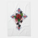 Silver Cross with a Red Rose Kitchen Towel