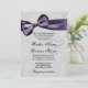 Silver Damask and Deep Purple Bow Wedding Invitation