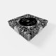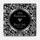 Elegant silver floral damask with silver black circle with a heart inside. 25th wedding anniversary