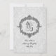 Silver Damask Gray Vintage Frame Monogram Wedding Invitation