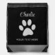 Silver Dog Paw on black background Drawstring Bag