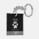 Silver Dog Paw on black background Keychain