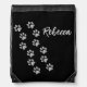 Silver Dog Paws black Background Print Pattern Drawstring Bag