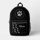 Silver Dog Paws black Background Print Pattern Printed Backpack
