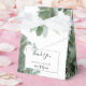 This design features silver dollar eucalyptus leaves and branches. The beautiful greenery of the eucalyptus leaves compliment the elegant black modern thin border surrounding the wedding wording. A perfect fusion of modern and chic with eucalyptus silver green color tones. Silver green, black and white are a perfect match for a rustic greenery themed wedding. Unique wedding favor box design with modern elements. Matching wedding invitations and other stationery items are also available.