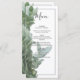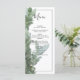This design features silver dollar eucalyptus leaves and branches. The beautiful greenery of the eucalyptus leaves compliment the elegant black modern thin border surrounding the wedding wording. A perfect fusion of modern and chic with eucalyptus silver green color tones. Silver green, black and white are a perfect match for a rustic greenery themed wedding. Unique wedding menu card design with modern elements. Matching wedding invitations and other stationery items are also available.