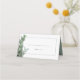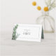 This design features silver dollar eucalyptus leaves and branches. The beautiful greenery of the eucalyptus leaves compliment the elegant black modern thin border surrounding the wedding wording. The reverse of the place card showcases the bride and grooms names with the wedding date. A perfect fusion of modern and chic with eucalyptus silver green color tones. Silver green, black and white are a perfect match for a rustic greenery themed wedding. Unique wedding place card design with modern elements. Matching wedding invitations and other stationery items are also available. Easy to personalize with your details. Hand write your guest names and table number in the space provided.