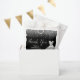 A beautiful silver themed elegant watercolor dress gown on a black background with faux glitter at the top and bottom of the favor bag.