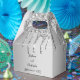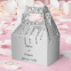 Personalize these silver dripping glitter wedding favor boxes. The front and back can both be edited to add your names and wedding date and your saying.