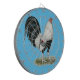 Silver duckwing roosters are resplendent chickens in glossy black and white. Duckwing fowl are named for the blue-black wing bar, like a mallard's wing. Commissioned by Kenny Troiano for his book on game fowl colors.
