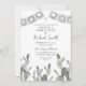 Silver Dusty Blue Mexican Cactus Bautizo Invitation