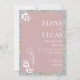 Silver dusty rose white sketch floral wedding invitation