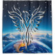 At sunrise a silver eagle flies above the Earth towards the stars.