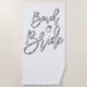 Beach towel with silver effect Beach Bride text (look like, imitation) and ring printed on white background