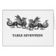 Perfect for a sophisticated fantasy tabletop game themed wedding is this nerdy and unique Elegant Dragons Wedding Table Number Card featuring a vibrantly colored pair of silver dragons. Easy to customize, simply add the appropriate table number(s) in the text field provided. Click "Customize It" to find additional personalization options.