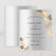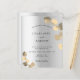A modern, elegant and minimalist wedding invitation. Faux silver metallic looking background decorated with golden eucalyptus, sprigs. Personalize and add your names and wedding details. Black colored letters.
