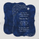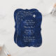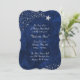 Shooting silver stars on a dark blue background are featured on this prom formal event bracket die cut invitation. Perfect for a stars themed prom, starry night prom theme, company party, or any star themed formal dance. Designs are flat printed illustrations/graphics - NOT ACTUAL SILVER FOIL.