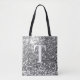 Silver Faux Glitter Bokeh Sparkles Monogram Tote Bag