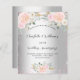 A faux silver metallic looking background with pink faux glitter, sparkles, and blush pink florals. Personalize and add your names and details.