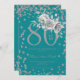 Silver Floral & Confetti 80th Birthday Teal Invitation