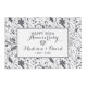 Elegant silver floral damask pattern and silver silver heart over white background. Silver wedding anniversary