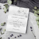 A modern, elegant and minimalist wedding invitation. Faux silver metallic looking background decorated with silver florals. Personalize and add your names and wedding details. Black colored letters.