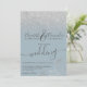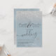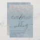 Silver floral glitter dusty blue script wedding invitation