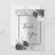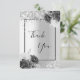 Faux silver looking background, decorated with faux glitter, sparkles and florals.On front large hand lettered script and the text: Thank You.