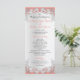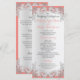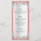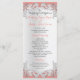 Custom silver floral lace like design with coral background or change color as prefered. Customize with wedding details, ceremony information, menu or any text on this two sided card.