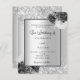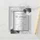 Faux silver looking background decorated with florals, flowers and faux silver glitter, sparkles. Personalize and add your names and wedding details. Black letters.