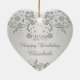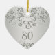 Silver floral swirls, leaves and heart on a silver gradient background 80th Birthday Ornament.